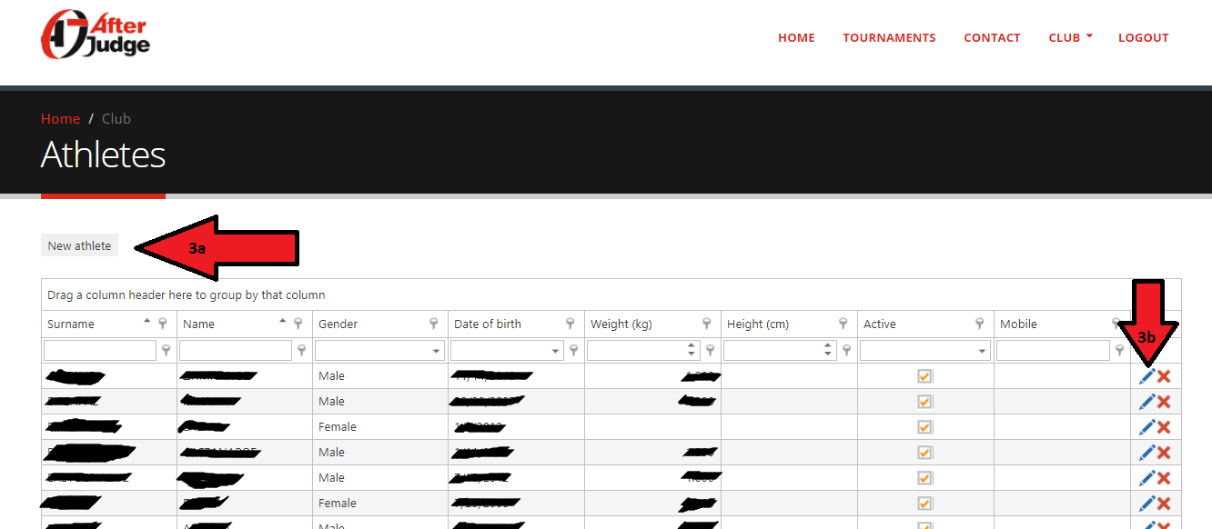 - 3b. By clicking on “Edit”, you can update athletes’ details.