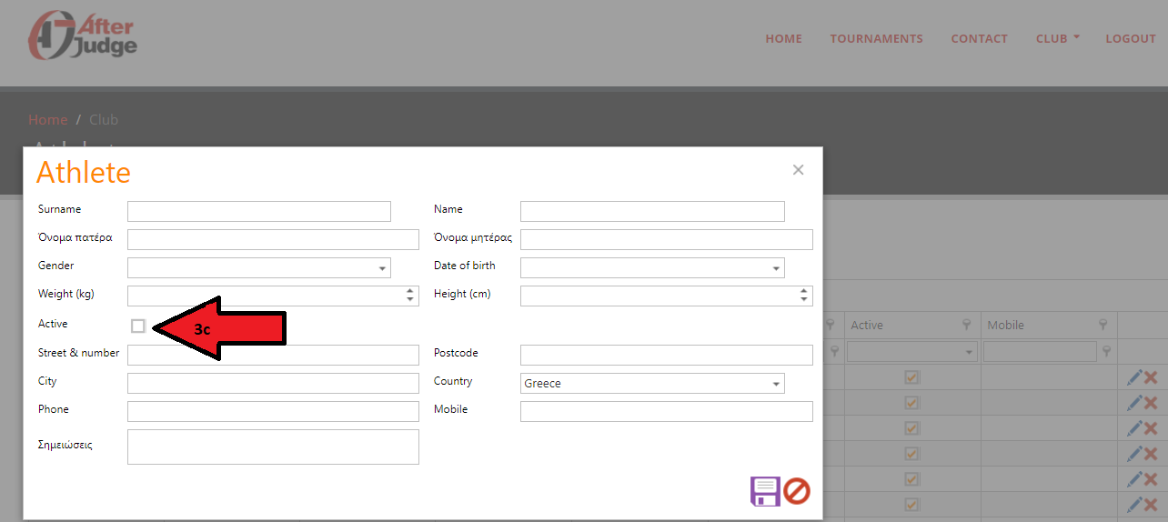 - 3a. By clicking on “New athlete”, a new athlete can be added.