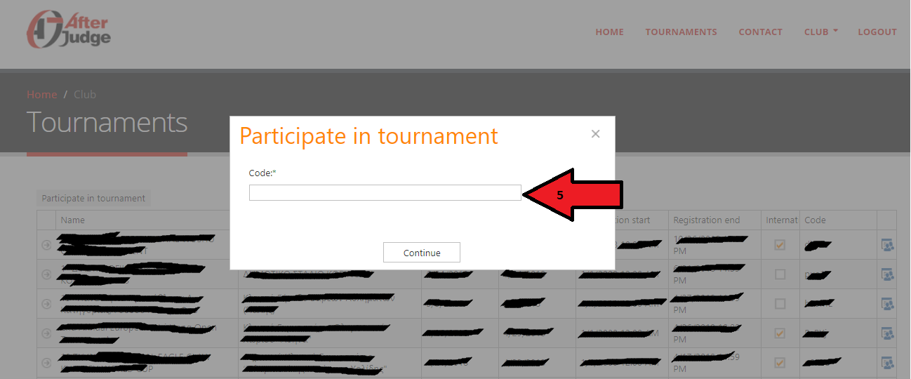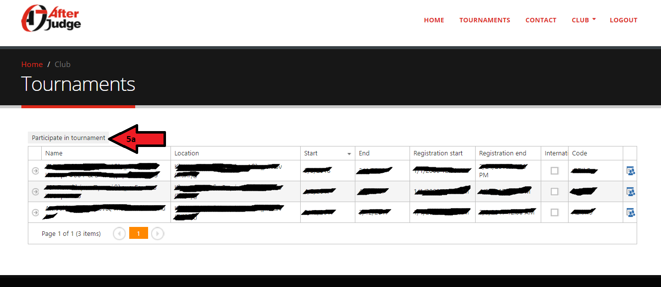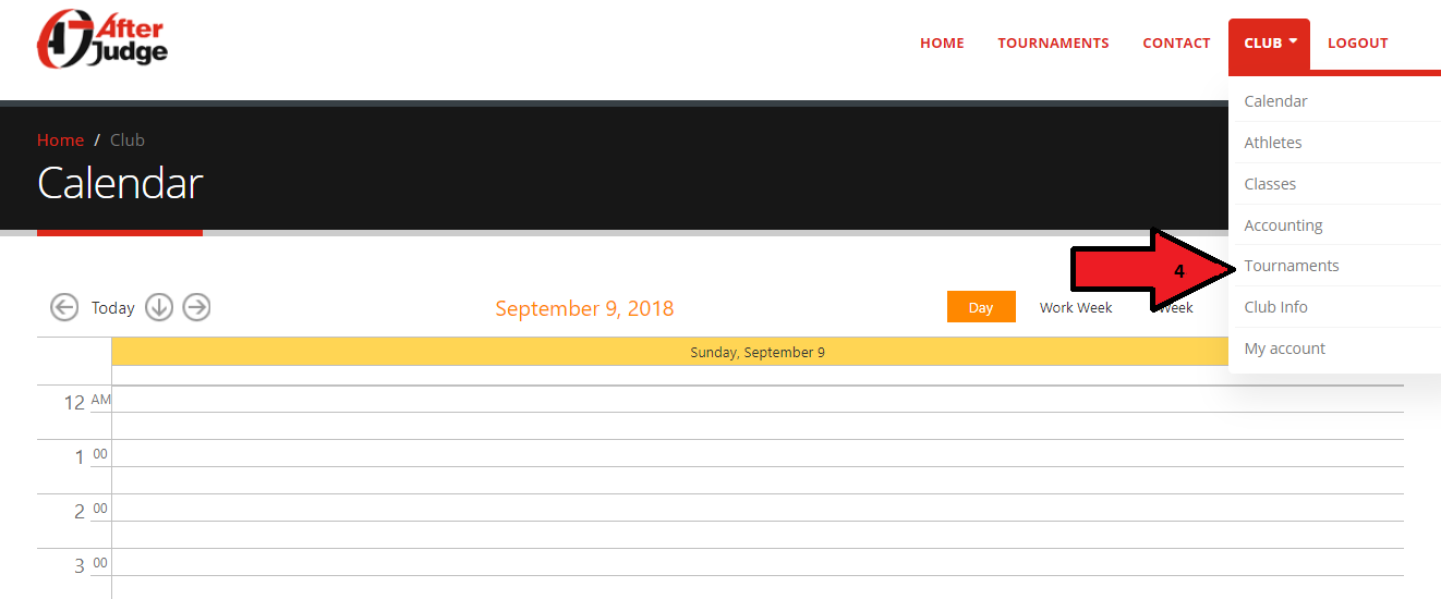 4. To register for the tournament that you are interested in, use the “Club” menu.